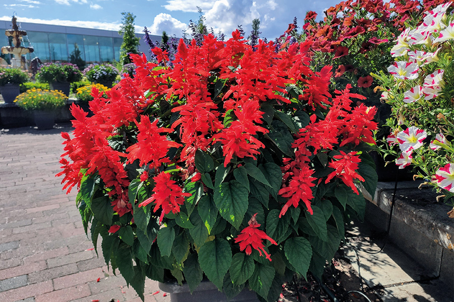 Red Hill is a heat-tolerant, tall bright-red flowering Salvia splendens that grows up to a height of 60 cm (24”) and above. Strong basal branching allows it to develop a sturdy, robust plant with abundant bright-red flower spikes held above its dark-green leaves.Red Hill is a heat-tolerant, tall bright-red flowering Salvia splendens that grows up to a height of 60 cm (24”) and above. Strong basal branching allows it to develop a sturdy, robust plant with abundant bright-red flower spikes held above its dark-green leaves.